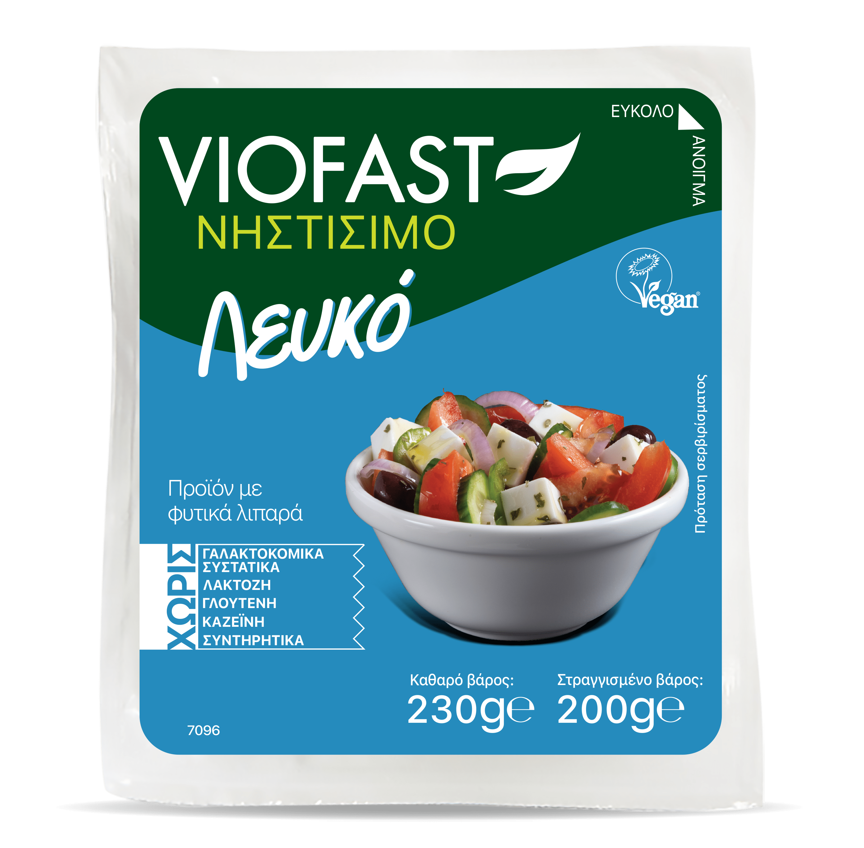 Η εταιρεία μας συνεχίζει να καινοτομεί με την δημιουργία του ΠΡΩΤΟΥ Νηστίσιμου Λευκού Τυριού στην ελληνική αγορά. Το Viofast Λευκό με γεύση παραδοσιακής ελληνικής φέτας, παράγεται με λάδι καρύδας και, όπως και τα υπόλοιπα προϊόντα της σειράς, δεν περιέχει γαλακτοκομικά συστατικά, λακτόζη, σόγια και γλουτένη. Είναι η ιδανική επιλογή για νηστίσιμη χωριάτικη σαλάτα, κρύα σάντουιτς, τοστ, πίτες, καθώς και νηστίσιμες συνταγές κατσαρόλας και φούρνου.